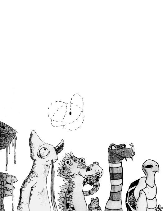 A line up using lizards as the subject(left to right) Komodo Dragon,Horned Chameleon,Speckled Caiman,Brown Toad,Water Moccasin,Box Turtle.