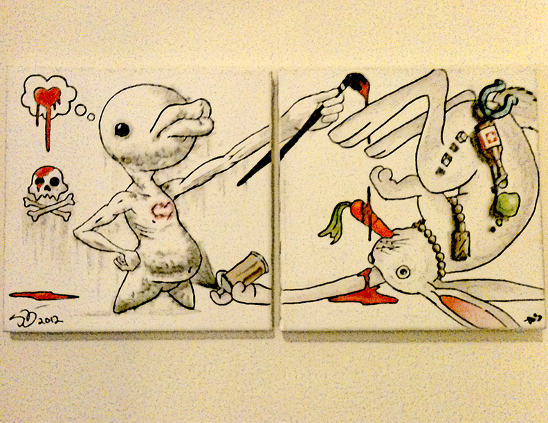Another PGXMC2 collaboration ,What if two minds became one? A surrealist exercise called beautiful corpse, fellow artist Stephen Hinton and I took turns on adding each part to the piece. Check out his site http://wereontherun.blogspot.com/. Acrylic on canvas.